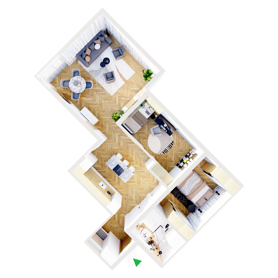 Mieszkanie jest sprzedawana w stanie deweloperskim, a poniższy spacer wirtualny prezentuje jak może wyglądać urządzone mieszkanie. Świadczymy też usługi wykończenia mieszkań pod klucz.