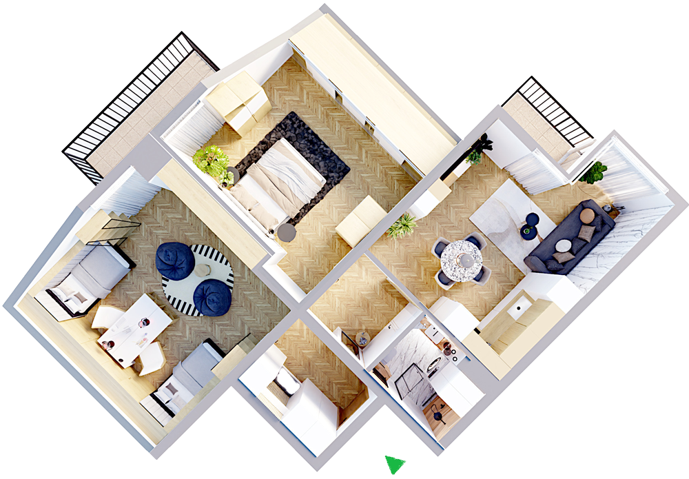 Mieszkanie jest sprzedawana w stanie deweloperskim, a poniższy spacer wirtualny prezentuje jak może wyglądać urządzone mieszkanie. Świadczymy też usługi wykończenia mieszkań pod klucz.
