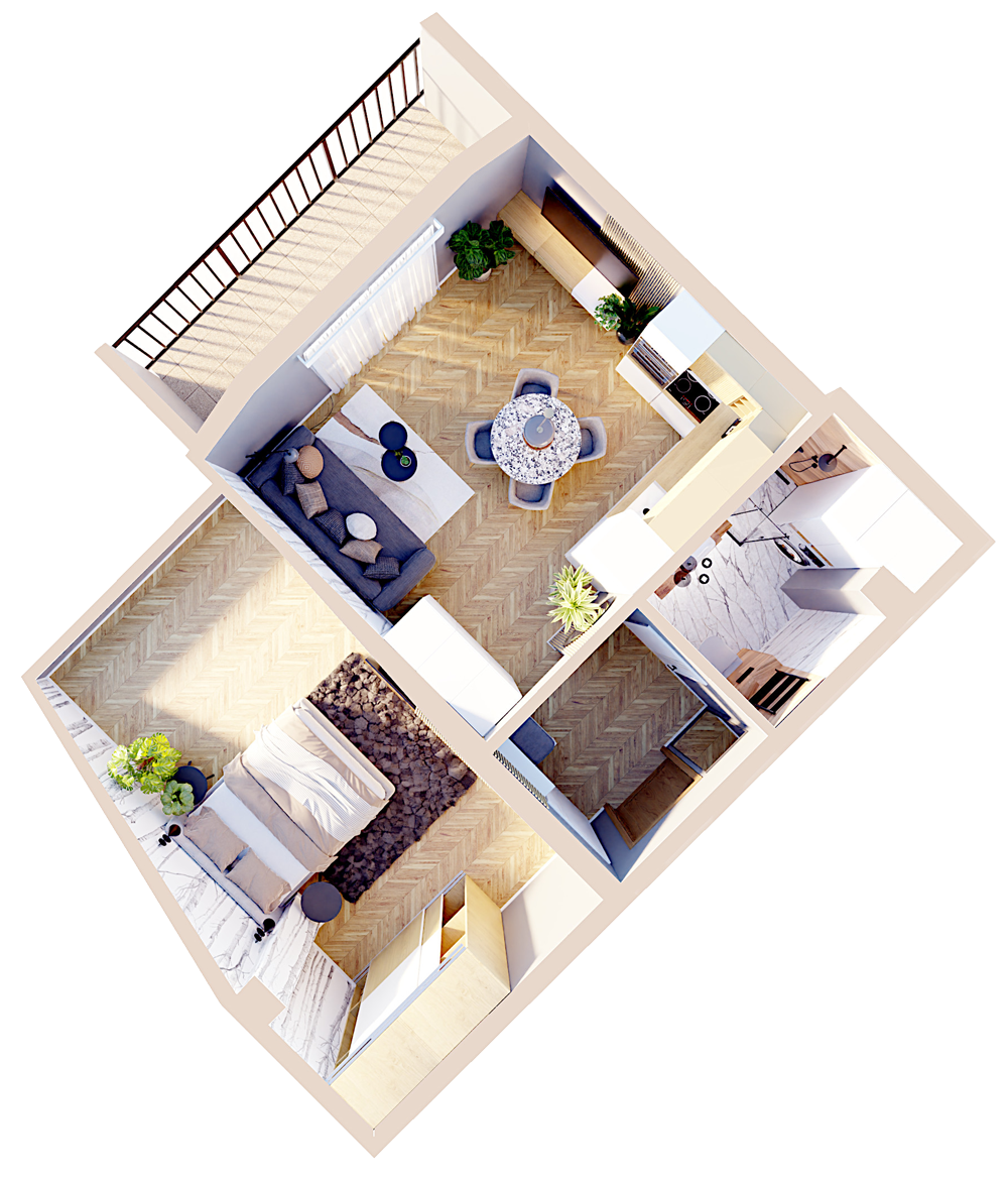 Mieszkanie jest sprzedawana w stanie deweloperskim, a poniższy spacer wirtualny prezentuje jak może wyglądać urządzone mieszkanie. Świadczymy też usługi wykończenia mieszkań pod klucz.