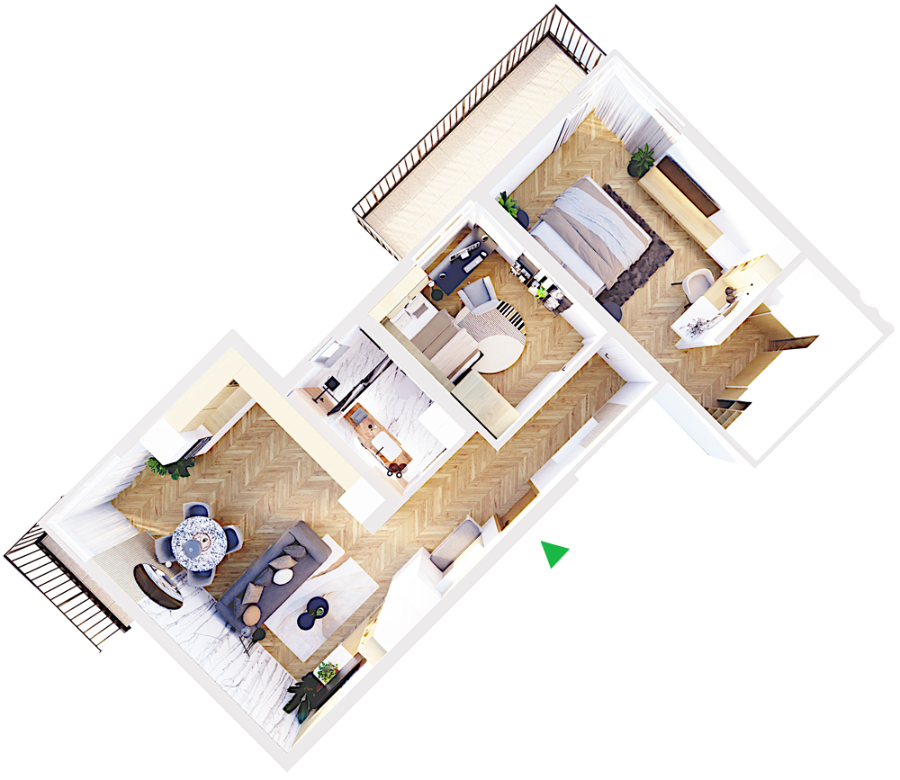 Mieszkanie jest sprzedawana w stanie deweloperskim, a poniższy spacer wirtualny prezentuje jak może wyglądać urządzone mieszkanie. Świadczymy też usługi wykończenia mieszkań pod klucz.