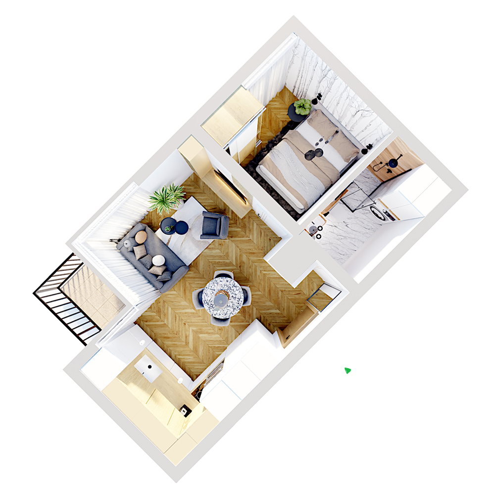 Mieszkanie jest sprzedawana w stanie deweloperskim, a poniższy spacer wirtualny prezentuje jak może wyglądać urządzone mieszkanie. Świadczymy też usługi wykończenia mieszkań pod klucz.