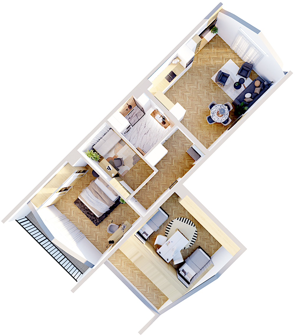 Mieszkanie jest sprzedawana w stanie deweloperskim, a poniższy spacer wirtualny prezentuje jak może wyglądać urządzone mieszkanie. Świadczymy też usługi wykończenia mieszkań pod klucz.